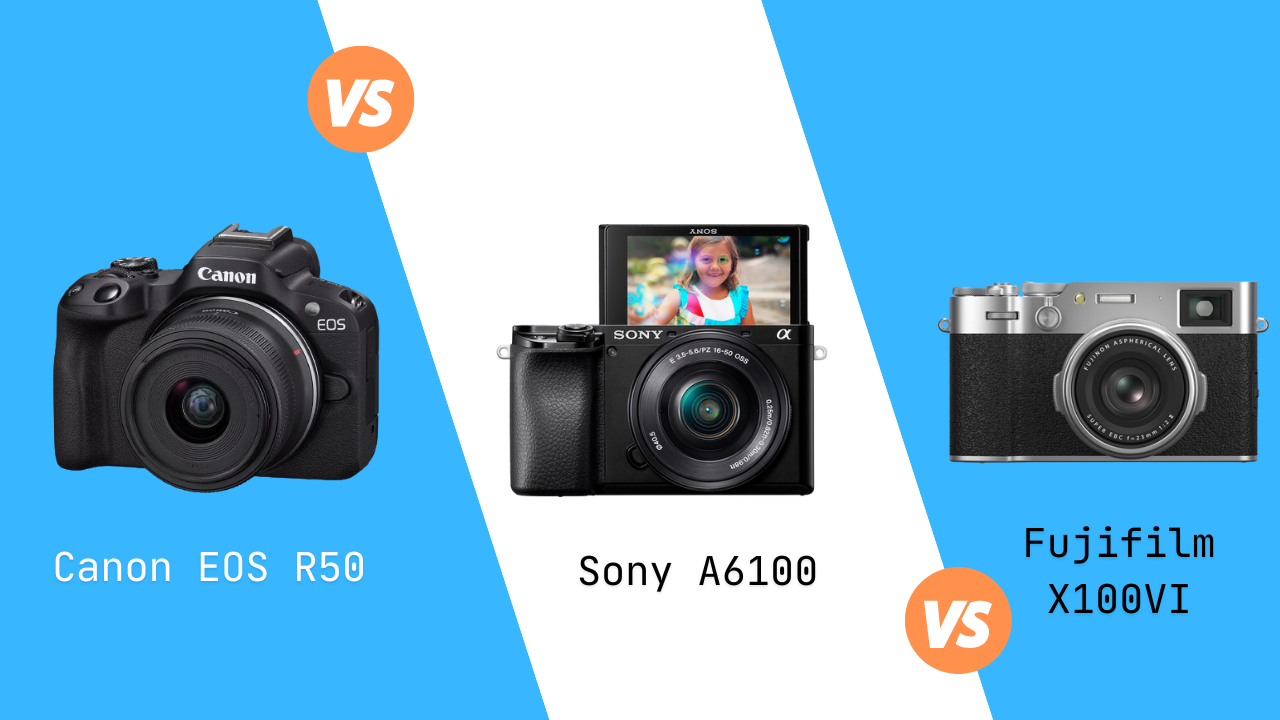 - Fujifilm X100VI: The Fujifilm X100VI is a photographer’s fixed-lens camera with a large 40MP sensor, stabilization, and advanced AF in a compact body. With its advanced autofocus and classic design, it’s a standout in the X100 series.
