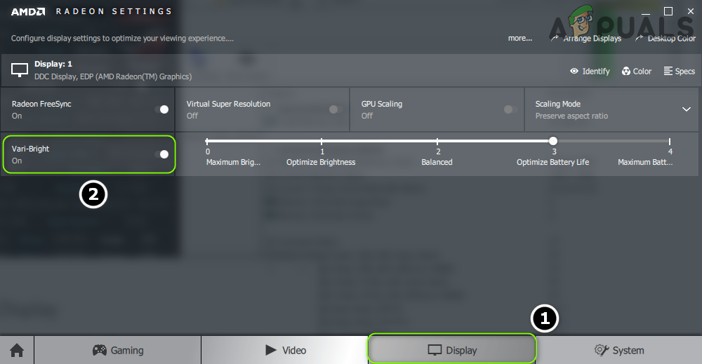 Open AMD Radeon Settings - Now steer to the Display tab and disable the Vari-Bright to check if the adaptive brightness issue is resolved.