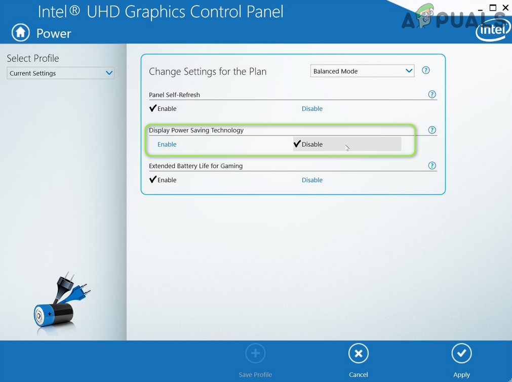 Disable Power Saving Technology - Now exit the Graphics Control Panel and check if the system is clear of the Adaptive Brightness problem.