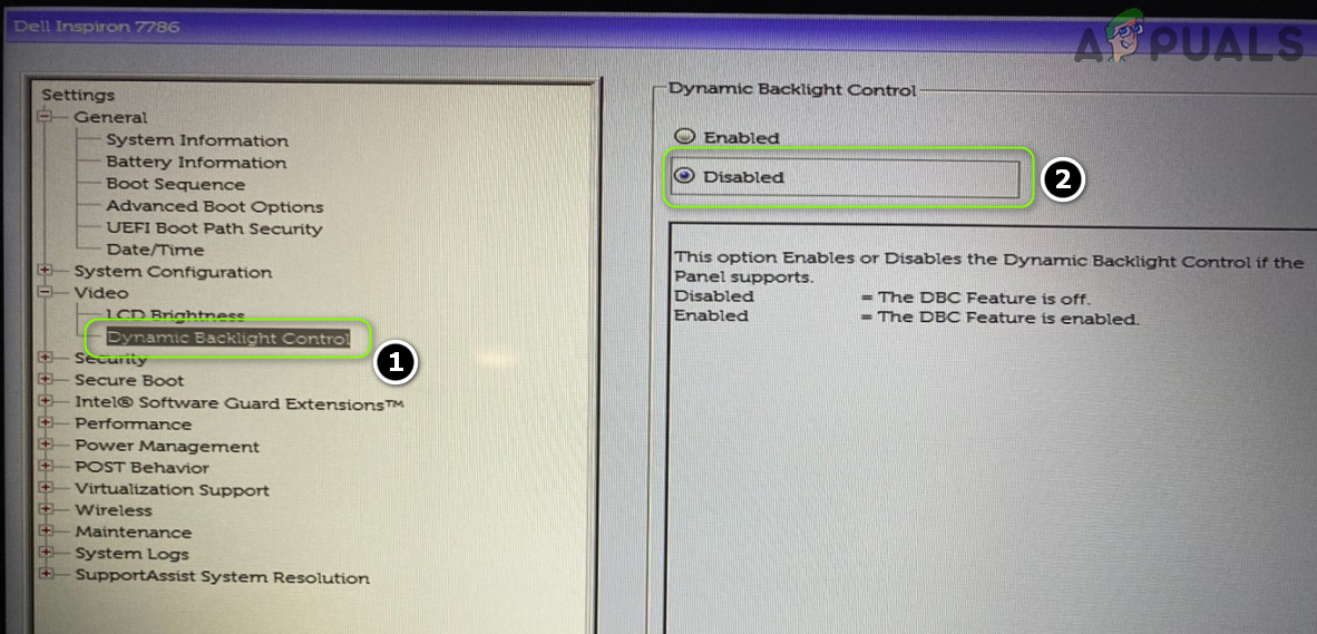 Disable Dynamic Backlight Control in BIOS - Then save your changes and boot your system into Windows to check if the adaptive brightness toggle issue is resolved.