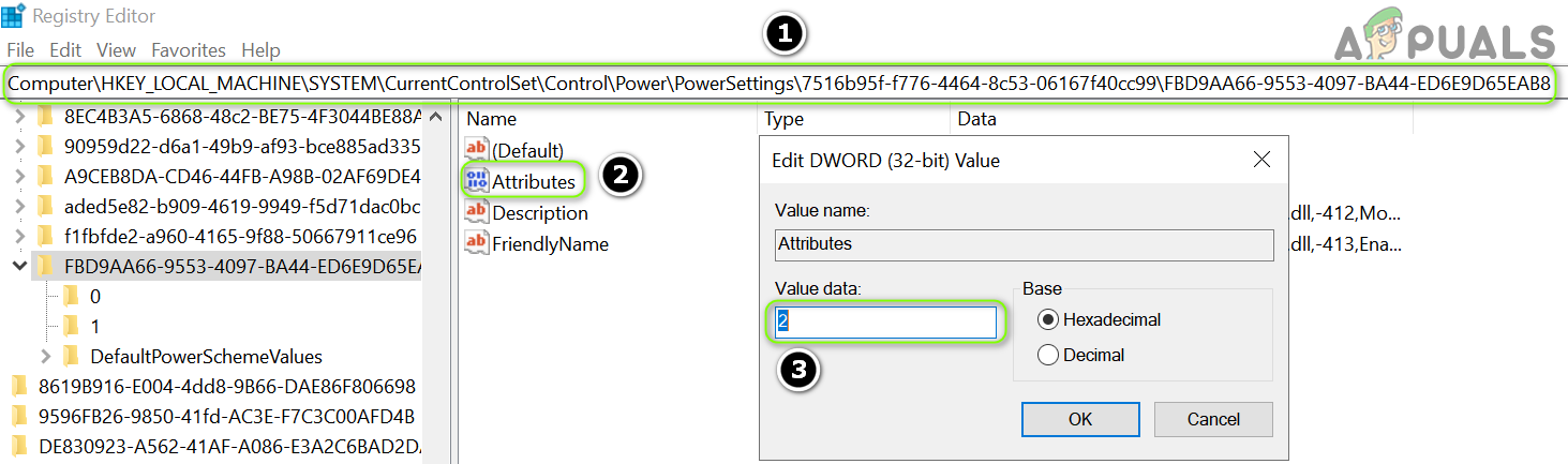 HKEY_LOCAL_MACHINE\SYSTEM\CurrentControlSet\Control\Power\PowerSettings\7516b95f-f776-4464-8c53-06167f40cc99\FBD9AA66-9553-4097-BA44-ED6E9D65EAB8