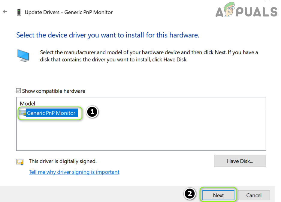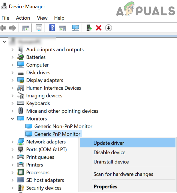 Install Generic PnP Monitor Driver - If the issue persists, then repeat steps 3 to 7 for your graphics card in the Display Adapters and check if that resolves the issue.