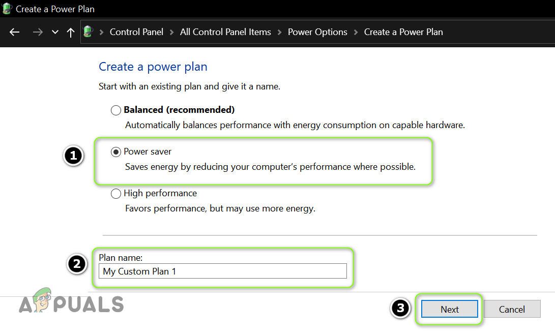 Create a Power Plan - Then enter the Plan Name as per your liking and click on Next.