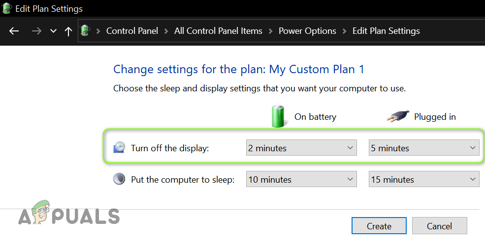 Set the Time Limit for Turn Off the Display - Now click on Create and then check if the display toggle issue is resolved.