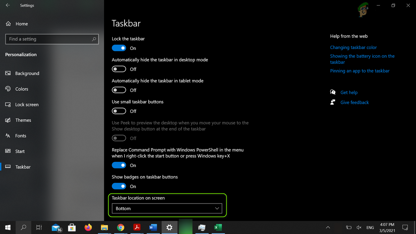 Solution 2: Change the Taskbar Location on the Screen