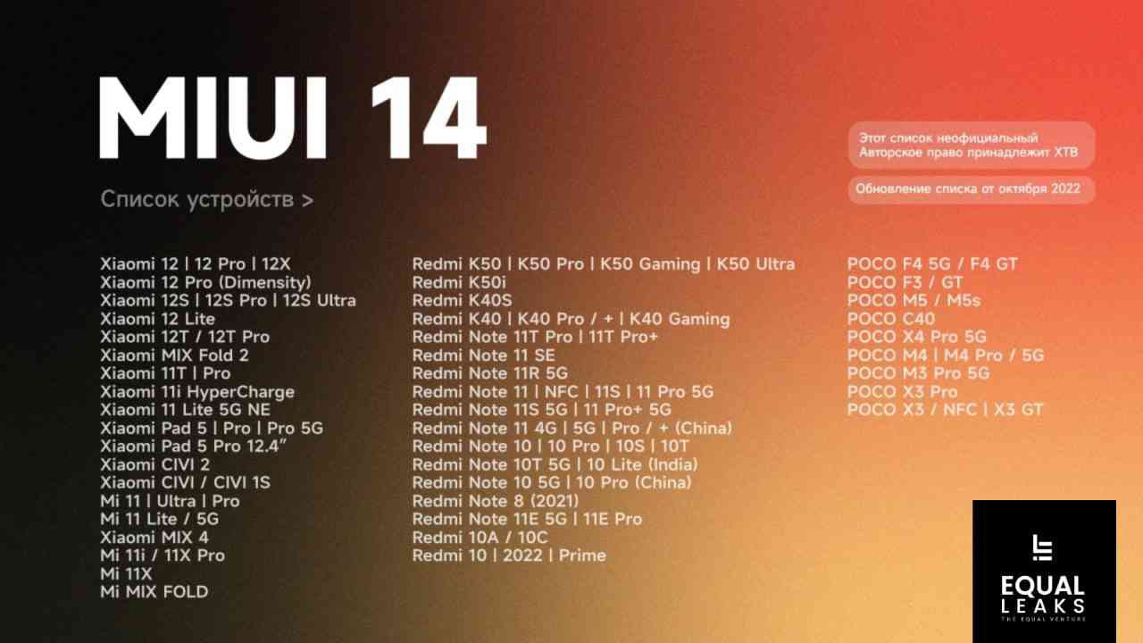 MIUI 14 List of Supported Devices Leaked, Several Models Included