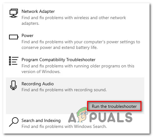 If you’re encountering this issue on Windows 10, follow the instructions below to run the Recording Audio troubleshooter and apply the recommended fix: