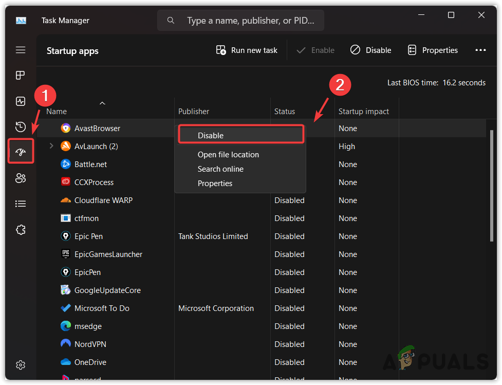 - Disable unneeded third-party applications by right-clicking and selecting Disable.