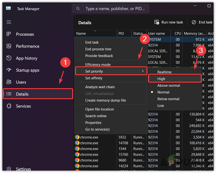- Select the Details tab, right-click on modernwarfare3.exe, and choose Set Priority.