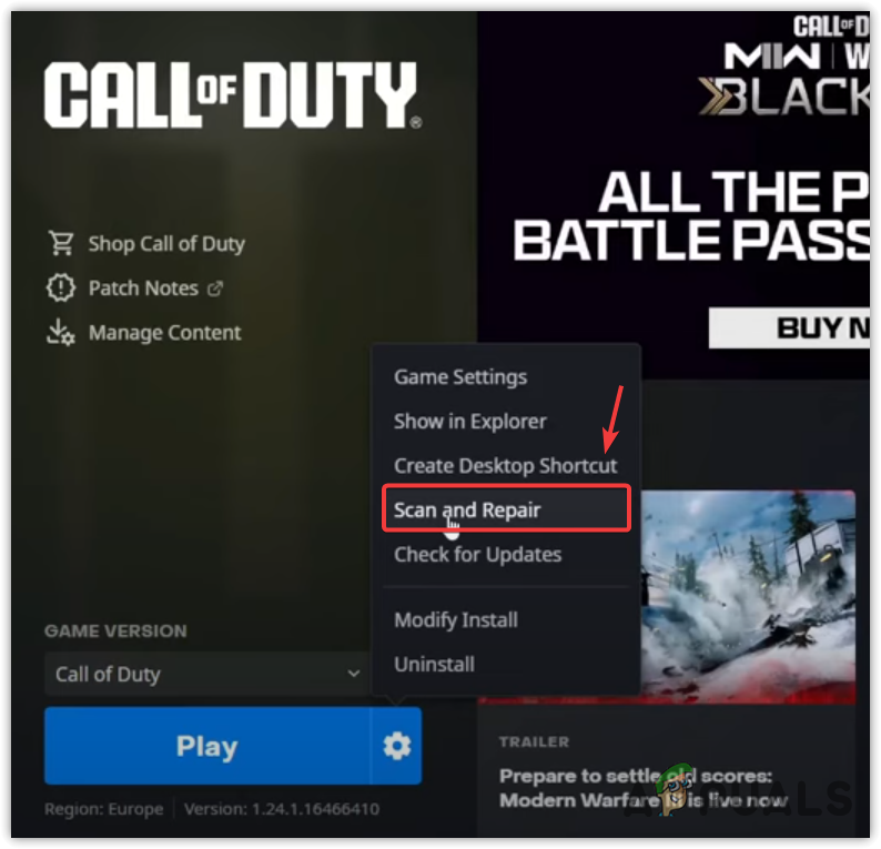 - Select MW3, then click the gear icon adjacent to the Play button.