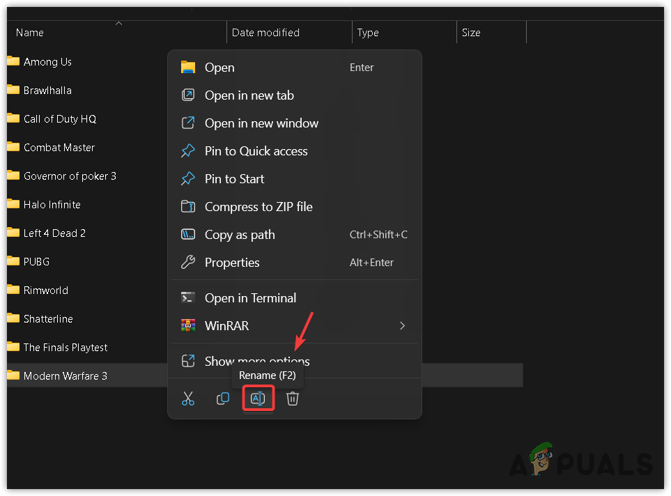 - Right-click the Modern Warfare 3 folder and select Rename.
