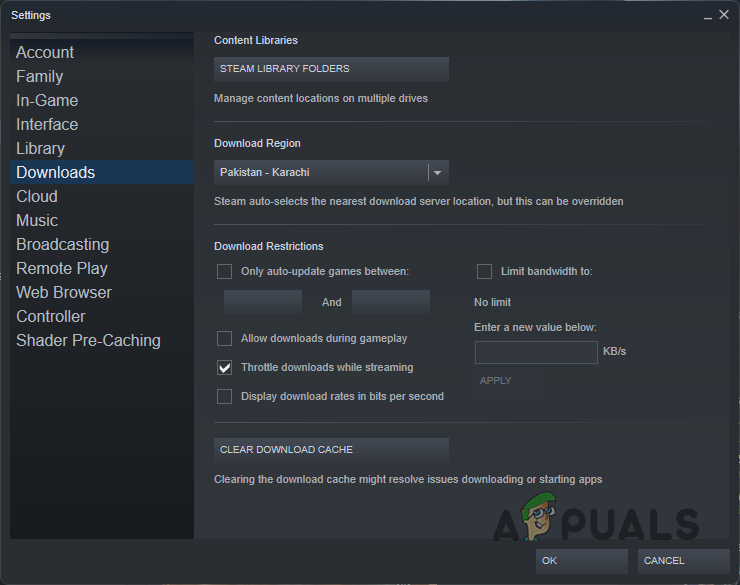 Opening Steam Settings - On the follow-up window, switch to the Downloads tab.