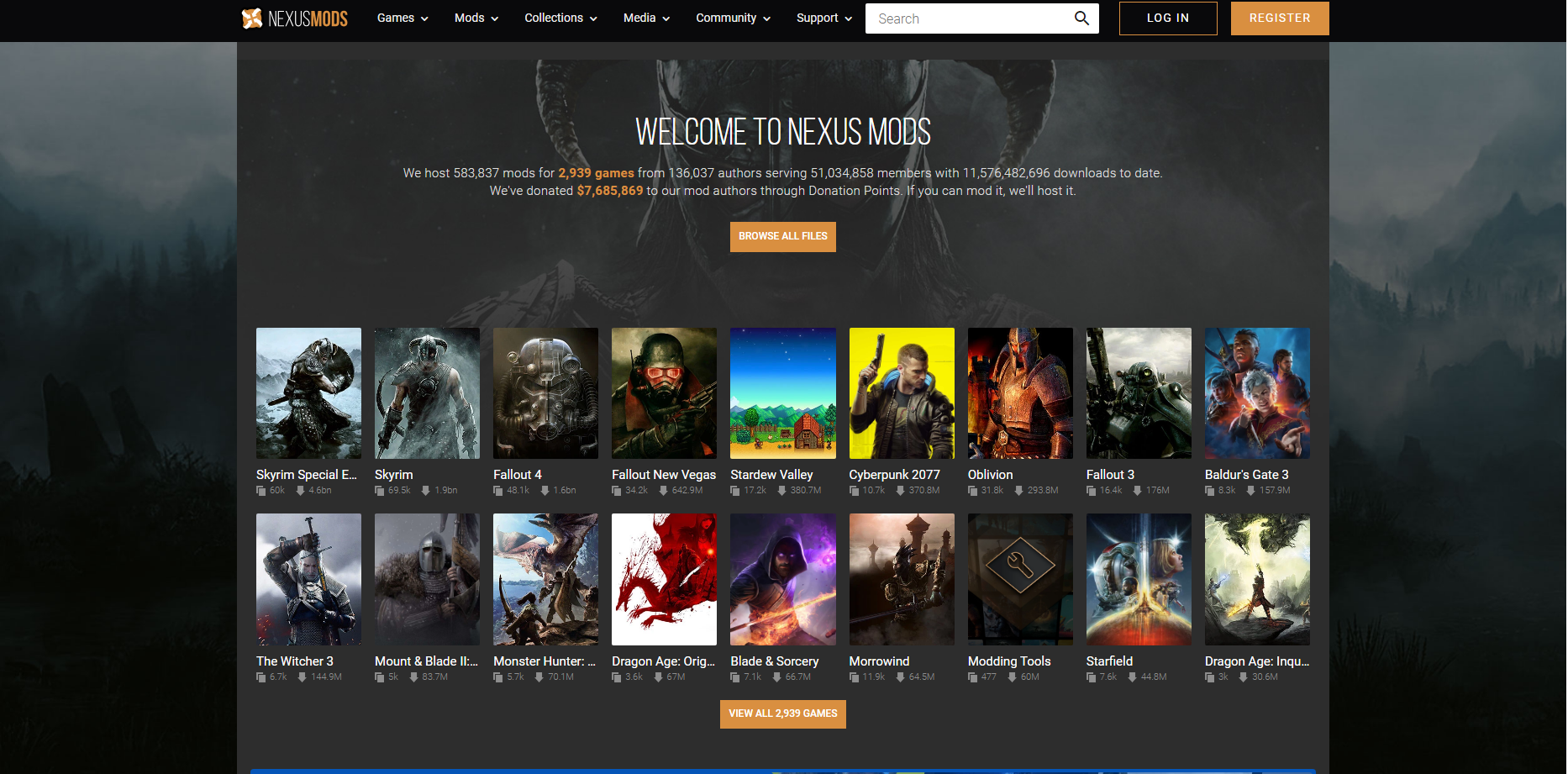 There are many places where you can get mods. However, the most widely used and most reputable mod site has to be Nexus Mods. It has been around for more than 20 years and boasts active moderation and numerous sorting and filtering options to help you find the best mods to meet your game’s needs. Aside from Nexus Mods, you may find some mods on the game’s official forums or GameBanana.