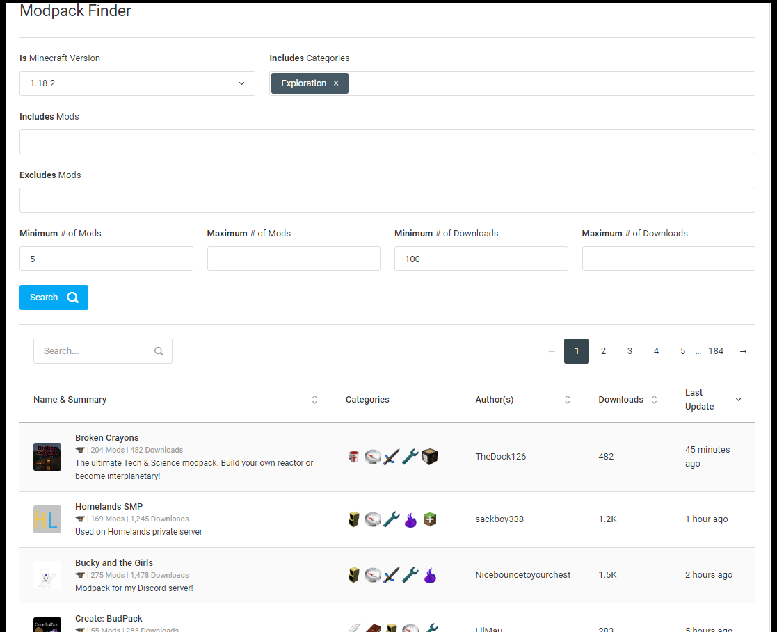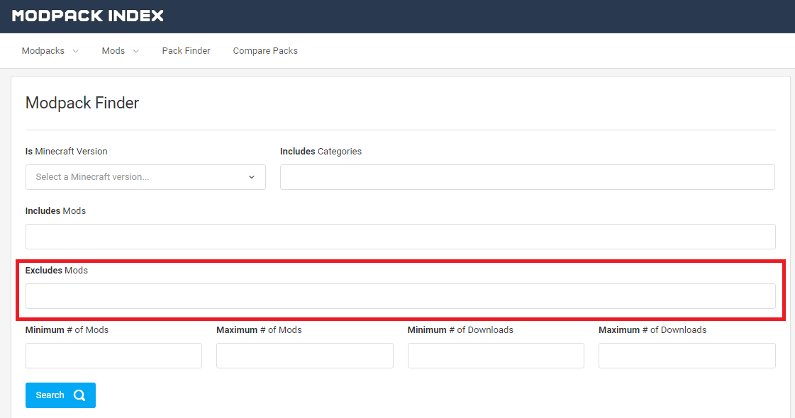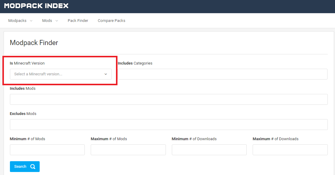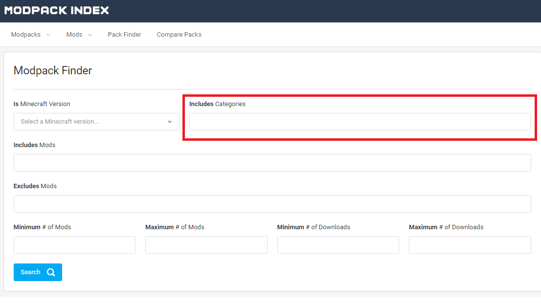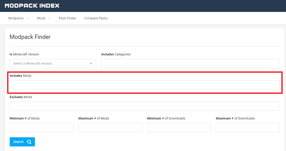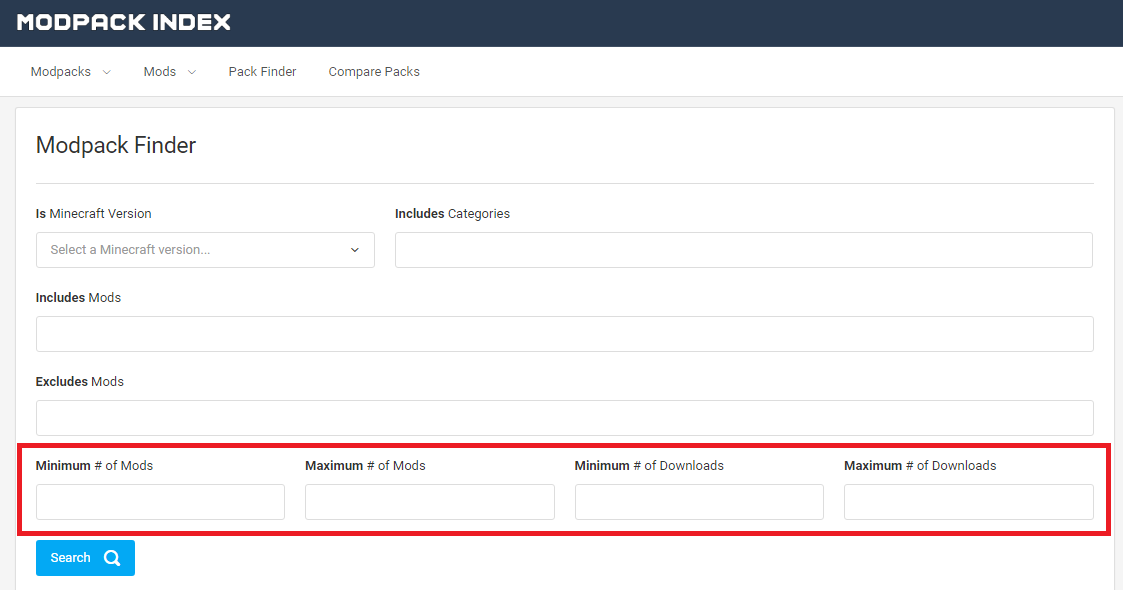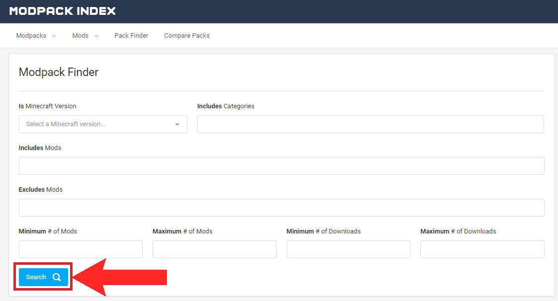 Enter the required amounts - Finally, click on Search to see if Modpack Index has any modpacks suiting your needs.