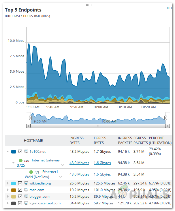 Top Five Endpoints - Under the graph, click on the endpoint which is using much bandwidth to view the details.