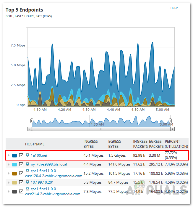 - Look at the Top 5 Endpoints resource graph. This will show you which endpoint is using the majority of the bandwidth.