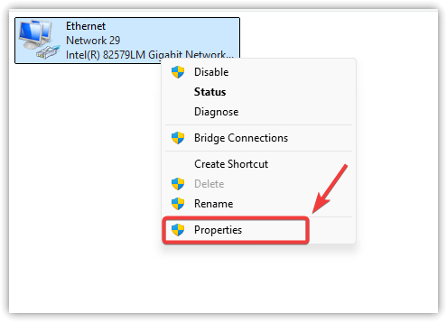 - Right-click your active network connection and select Properties.