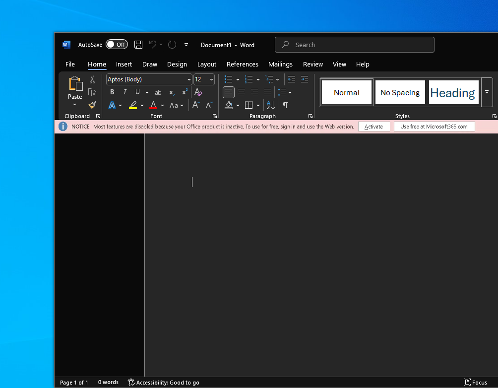 Note: This does NOT activate Office. It only provides temporary functionality.
