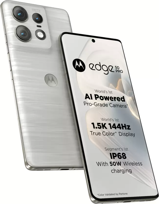 The Moto Edge 50 Pro features a 6.7-inch pOLED curved display with a resolution of 2712 x 1220 pixels, a 144Hz refresh rate, and up to 2000 nits brightness. Notably, it is the world’s first smartphone with a Pantone Validated display. Beneath the display, there is a fingerprint scanner for added security.