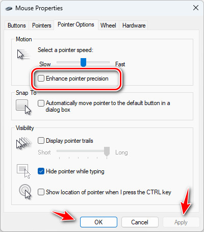 - Uncheck the box for Enhance pointer precision. This option can cause unpredictable mouse behavior when using multiple monitors.