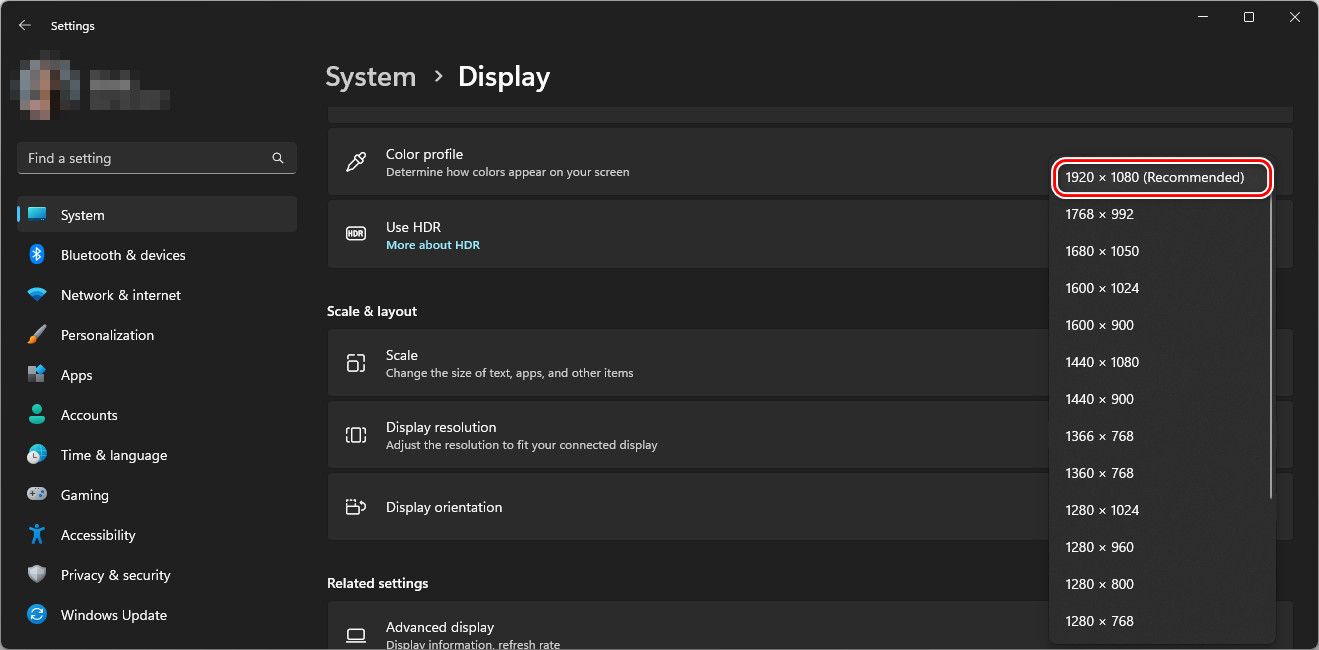 To Adjust for Resolution: Scroll down in the Display Settings and choose the correct resolution for each monitor. Ensure that the resolution is set to the advised value for the best results.