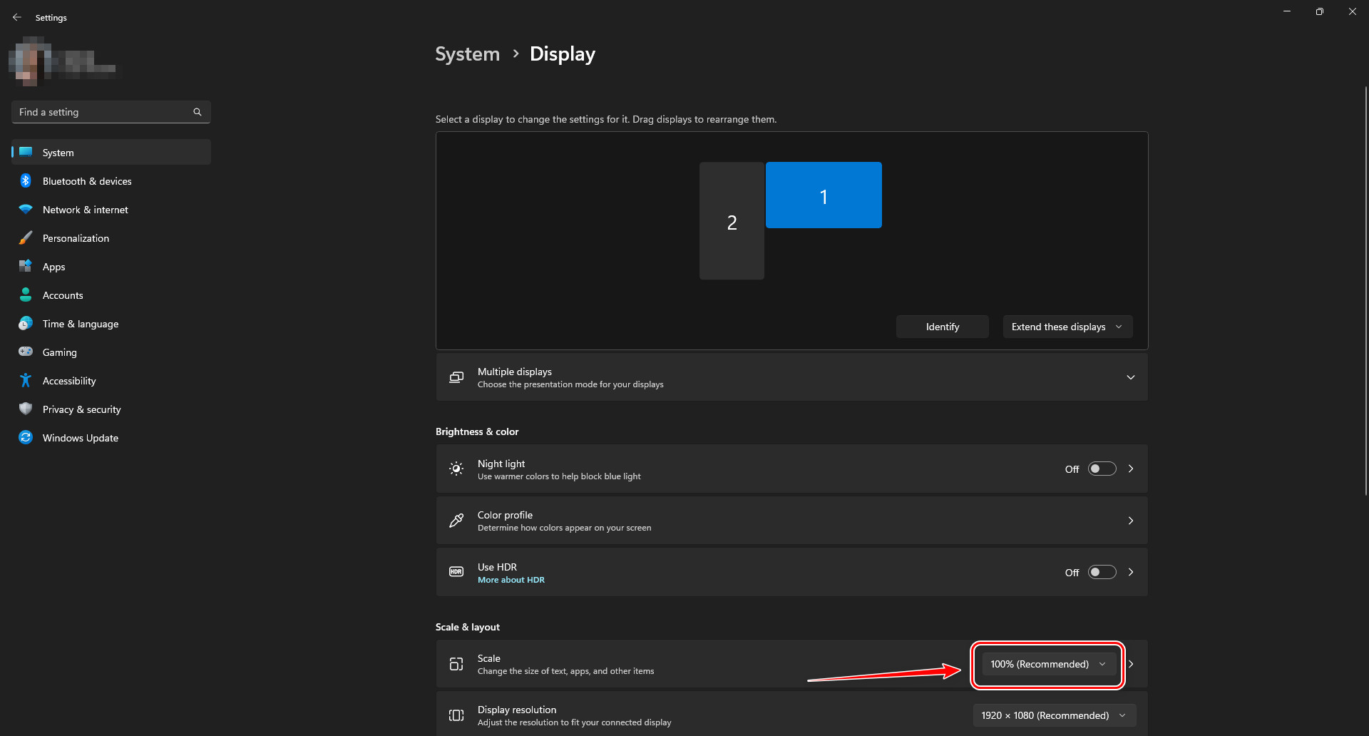 Choosing the recommended settings, particularly the suggested scale at 100%, is usually the best approach for optimal performance.