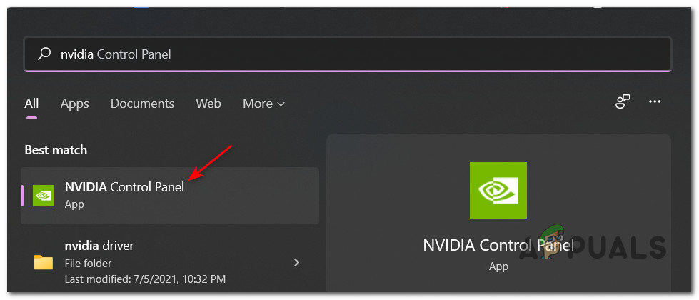 - From the list of results, click on Nvidia Control Panel.