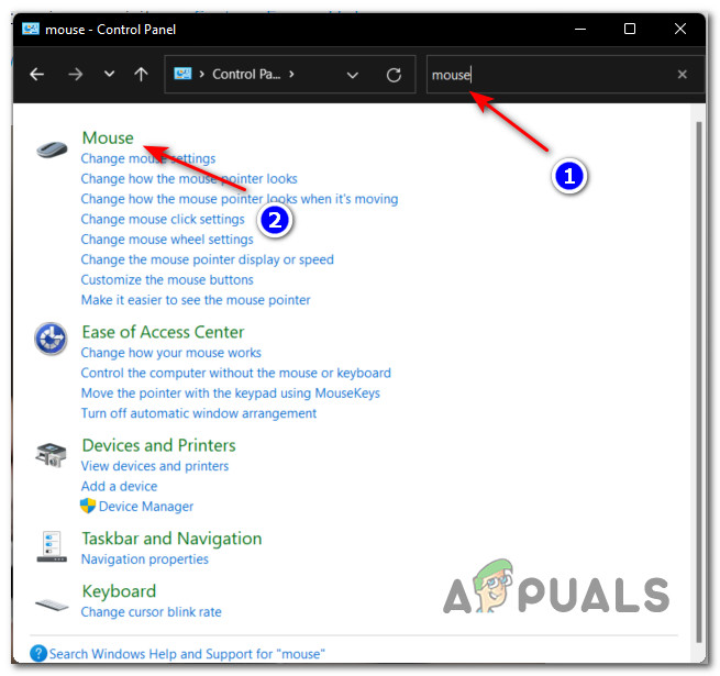 Opening the Classic Control Panel - Once you’re inside the Classic Control Panel interface, type ‘mouse’ in the search function in the top-right corner and press Enter.