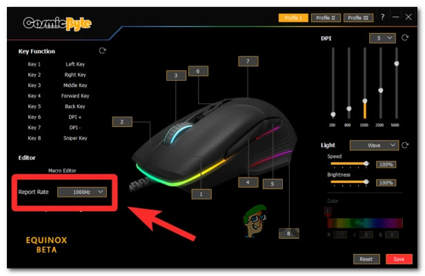 - Conflicting Pooling Rate – As it turns out, this type of mouse stuttering on Windows 11 is often associated with a high mouse polling rate (typically only available for high-end mouses). As of now, the only way to resolve this issue is to lower the pooling rate (Reporting Rate) to 500 HZ or lower.