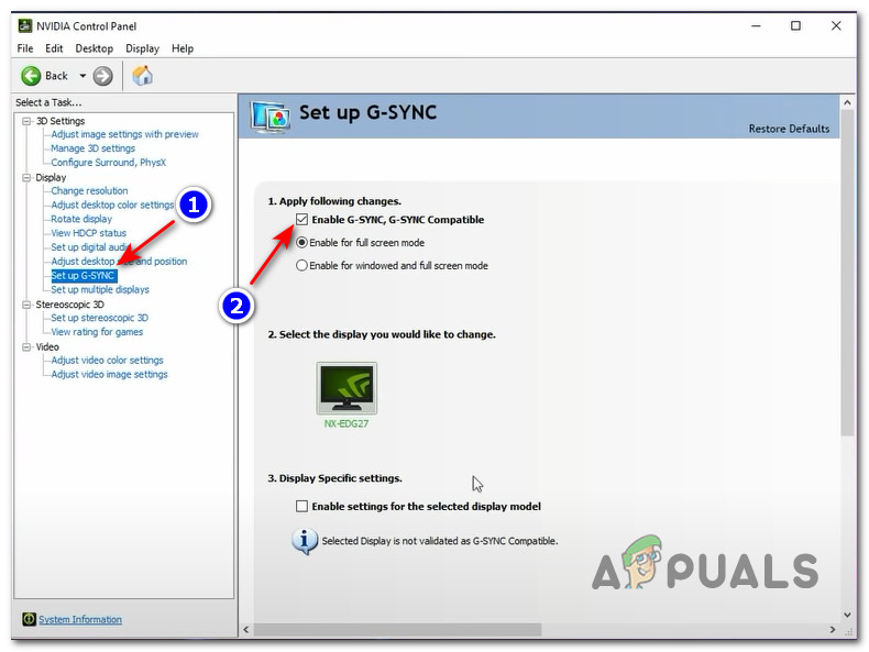 Accessing Nvidia Control Panel - Once you’re inside Nvidia Control Panel, click on Set Up G-Sync (under Display) from the vertical menu on the left.