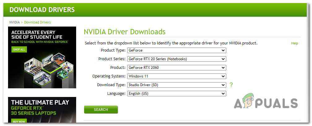 - Nvidia Game Ready glitch – If you’re experiencing this with an Nvidia GPU and you’re using the Game Ready driver experience, you should be able to alleviate the problem by switching over to the Studio Drivers. If you’re a gamer, making this change won’t affect your average framerates in any significant way.