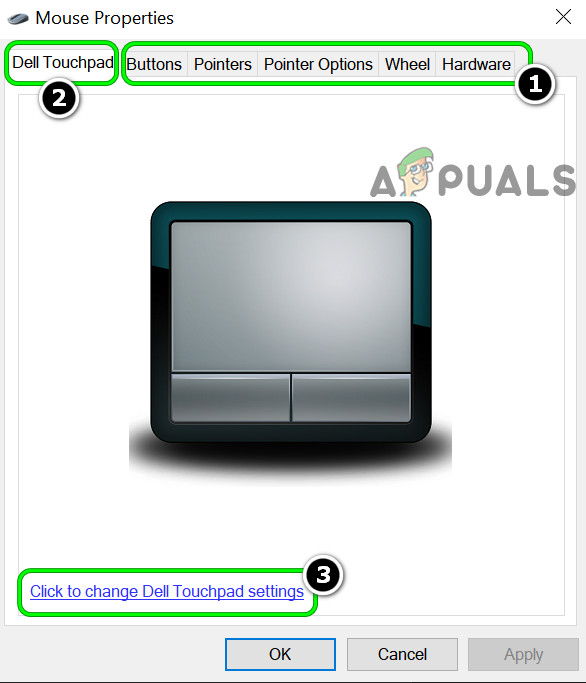 Open Additional Mouse Options - Now, in the Mouse Properties window, make the relevant changes in the different tabs (like Buttons, Pointers, Pointer Options, etc.) and then head to the first tab of the Mouse Properties window (e.g., Dell Touchpad).