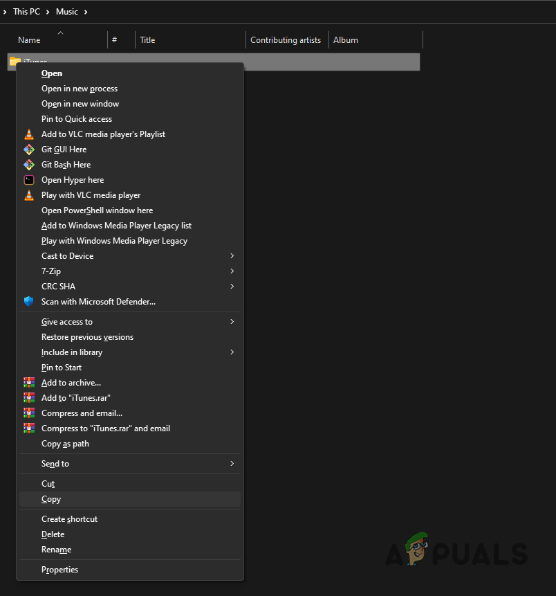 Locating iTunes Library Location - Once you have the iTunes library location, navigate to it and delete the existing iTunes library folder.