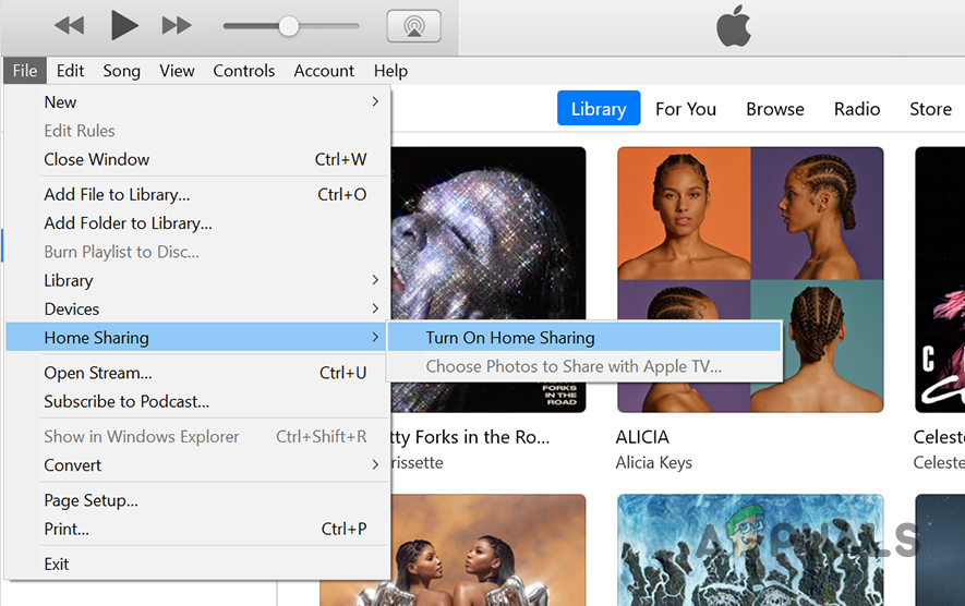 Home Sharing Icon - From the drop-down menu, tick the Shared Libraries checkbox.