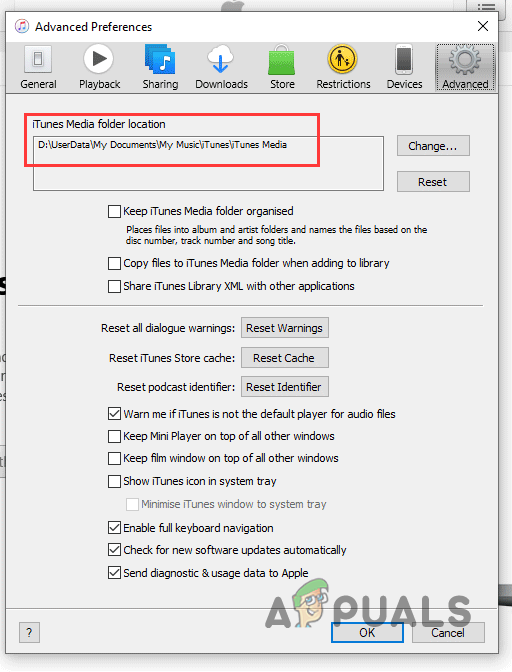 - After you install iTunes, open it up. Find the iTunes library location from the Advanced tab in the Preferences window.