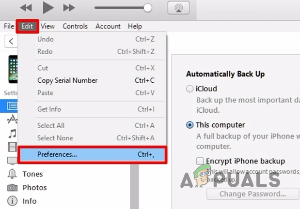 Navigating to Music Directory - In case you do not find the iTunes media folder there, it is very likely you have changed the default directory. If this case is applicable, navigate to Edit > Preferences. On a Mac, you will find Preferences under iTunes in the menu bar.