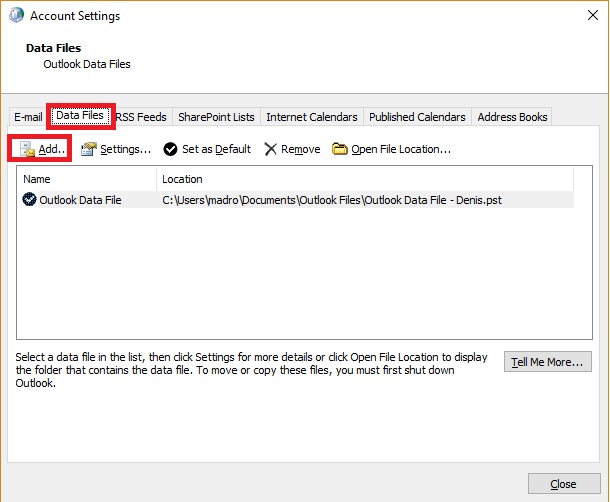 Once the new profile is created, we need to make the necessary arrangements so that the PST file we previously fetched gets recognized. Here’s how: