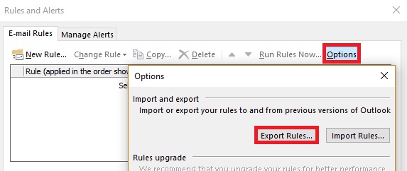 - Finally, paste the rules file into %YOURUSERNAME% \ Local Settings \ Application Data \ Microsoft \ Outlook.