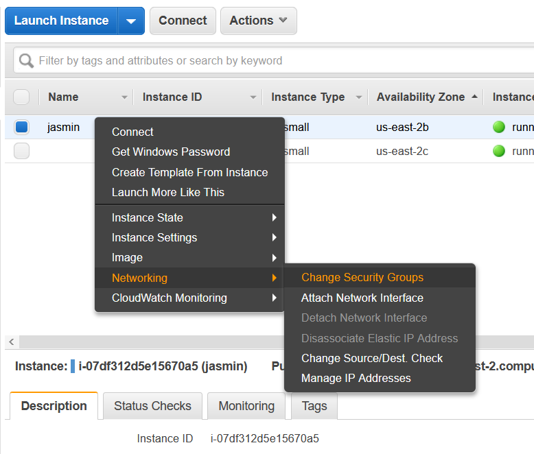 - Right click on the instance you want to move to another security group and then click Networking > Change Security Groups