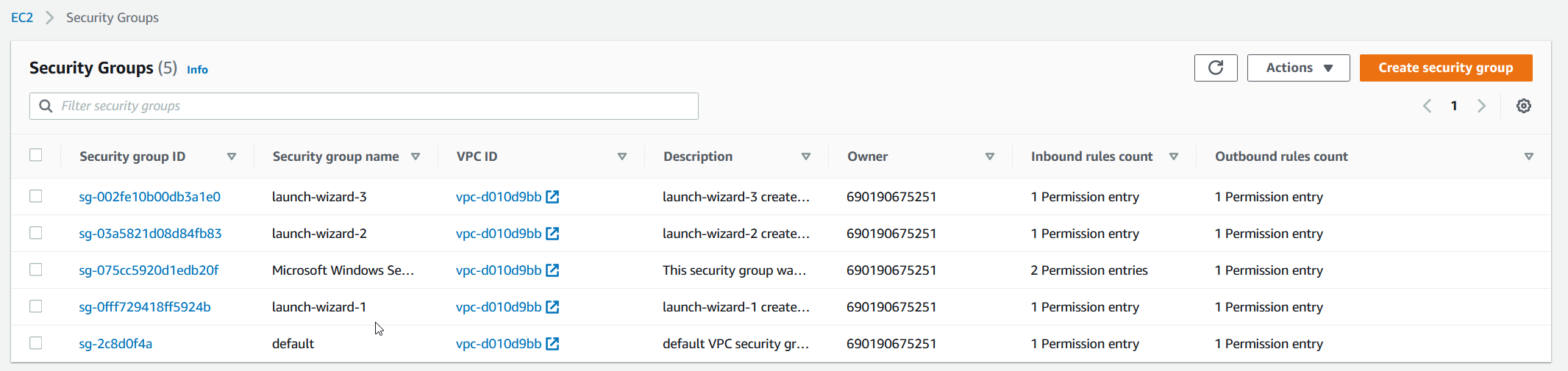 - Click on Create security group to create a new security group. You have successfully created a new security group.