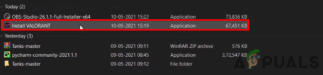 - Double click on the Valorant installer to open the Valorant setup.
