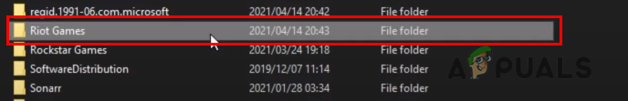 Type programdata in the Run Window - Here find the Riot Games manually or you can press R to straight down to Riot Games.