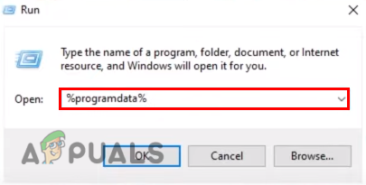 - Type %programdata% in the Run Window and press enter.