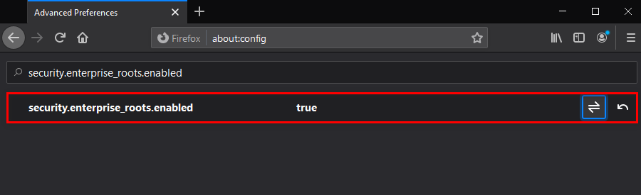 Changing the value of security.enterprise_roots.enabled - Once the modification has been enforced, restart your computer and see if the issue is resolved at the next startup.