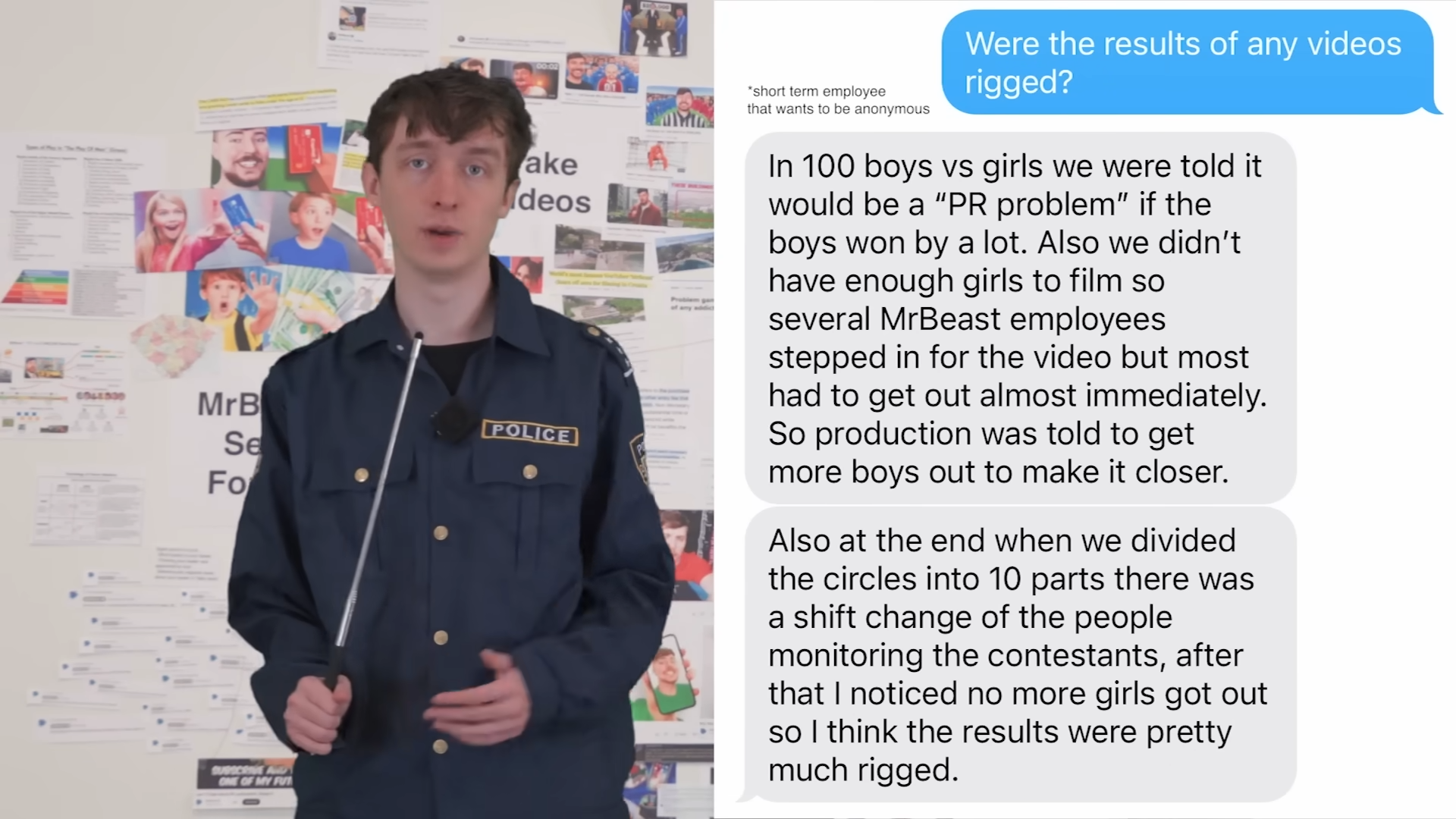 However, according to a short-term MrBeast employee, MrBeast didn’t have enough girls and that’s why a few members of the crew stepped in to balance the teams. The employee also says that the results of these videos were scripted and that it would be a “PR problem” if the boys won by a lot.