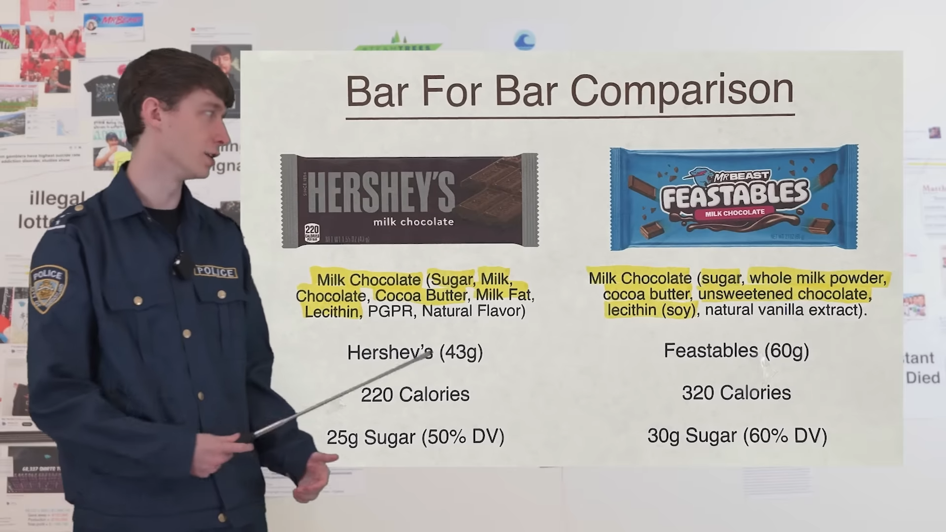 DogPack’s video also shows how MrBeast’s chocolate brand “Feastables” promotes false advertising by calling it “infinitely healthier” than other chocolate brands out there. Back when Festables was introduced the whole “only 5 ingredients” and “no processed ingredients” was true but that’s not the case anymore. When compared to a Hershey’s chocolate bar, Feastables contains more sugar and has 100 more calories.