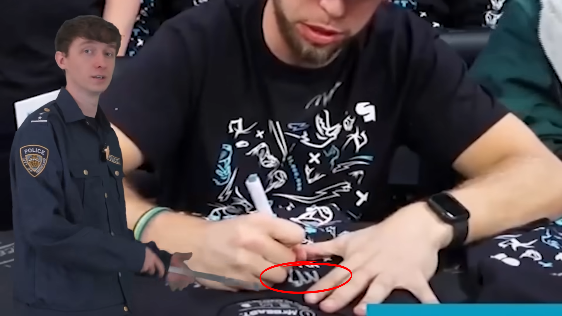 After that DogPack talks about how other members of the crew were using MrBeast’s signature. In one clip, Tyler, a member of MrBeast’s crew, is seen signing “MB,” MrBeast’s signature, on a T-shirt. He then adds his signature and quickly moves the T-shirt out of the frame. This puts into question the authenticity of MrBeast’s signed merch and whether the person behind these signs is him or not.