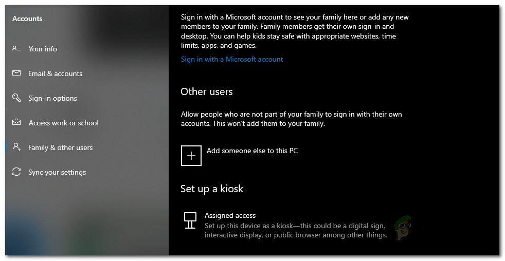 - To find an administrative from the user accounts, go to the Family & other users tab.