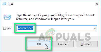 Run Dialogue Box - Type wsreset.exe in the dialogue box and click OK. This will enable the Windows Store app to reset.