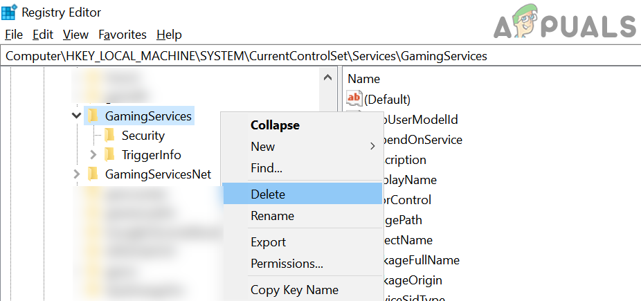 - Now, in the left pane, right-click on Gaming Services and select Delete.
